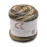 This new version of Marmel ("marble") yarn features two contrasting colors - this Duo of colors dances back & forth in a colorful rhythm as it unfolds on your needles. It is a DK weight cotton & acrylic blend that is easy care & useful for making all types of garments and accessories.